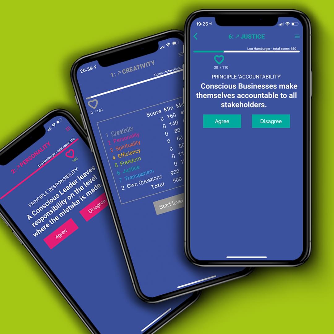 The app is packed with teachings by Conscious Leadership Experts like Hank Queen, Chris Laszlo, Barbara Marx Hubbard, Lance Secretan, Lindsey van Driel, Peter Matthies, Rinaldo Brutoco, Dr. Joe Dispenza, Frederic Laloux, John Mackey, Raj Sisodia, Margrit Kennedy, Rutger Bregman, Stefan Denaerde, Stephen R. Covey, Ken Wilber, Neale Donald Walsch and others.